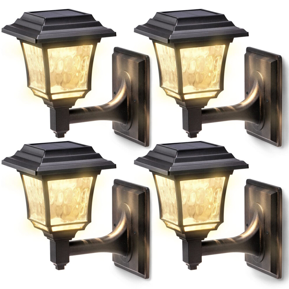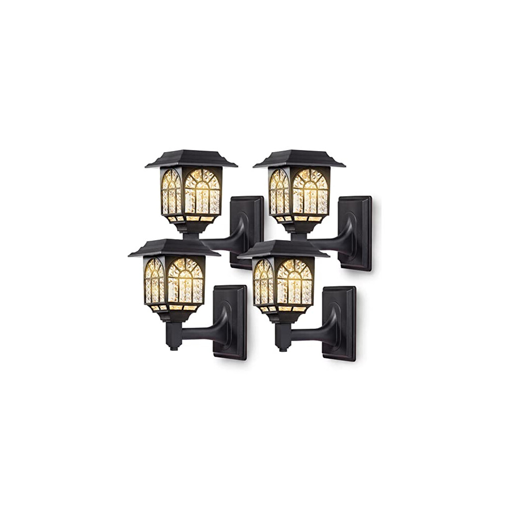 Quntis Solar Fence Lights, 4 Pack Solar Wall Lights Outdoor Garden, Waterproof Decorative Light, Auto ON/Off Retro Garden Fence Lights for Outside, Deck, Patio, Steps, Yard, Pathway, Warm White