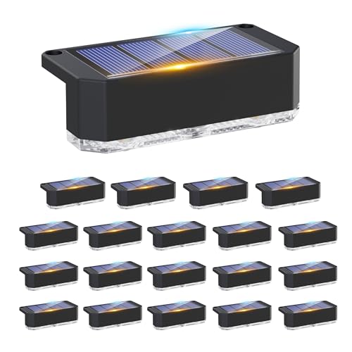Peasur 20 Pack Solar Fence Lights Outdoor Garden, Solar Powered Step Light, Waterproof LED Deck Lights for Stairs Railing Yard Outside (Warm White)