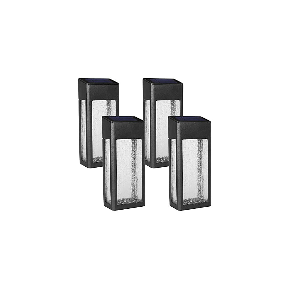 GOODFOEVER 4 Pack Solar Fence Lights Solar Post Accent Light/Wall Light for Outdoor, Yard, Fence, Porch and Garage, Body in Aluminum and Glass