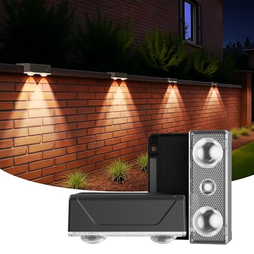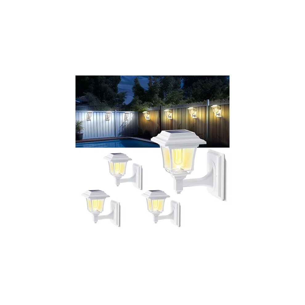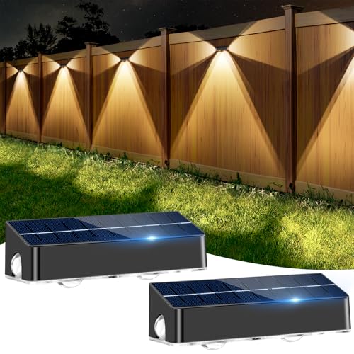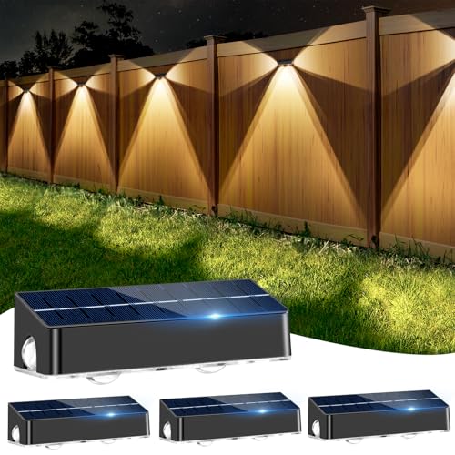 LeiDrail Solar Fence Lights Solar Lights Outdoor Garden LED Solar Powered Outdoor Wall Lights Waterproof Decor for Patio Yard Warm White 4 Pack