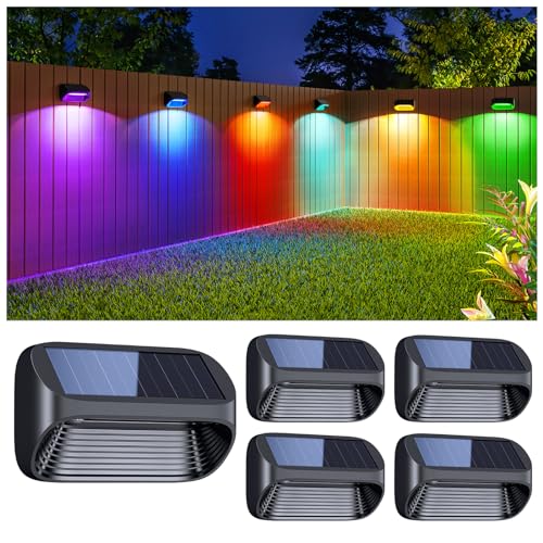 AGPTEK Solar Fence Lights, RGB Solar Wall Lights Outdoor Garden with 5 Modes & 8 Colors, 24H Battery Life, IP65 Waterproof for Fence, Patio, Wall, Garden Decoration, 4 Pack