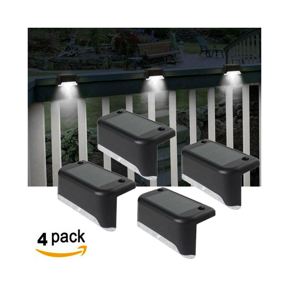 4 Pack LED Solar Stair Lights Black Shell White Light, Patio, Fence, Wall, Landscape, Driveway, Fence Solar Lights