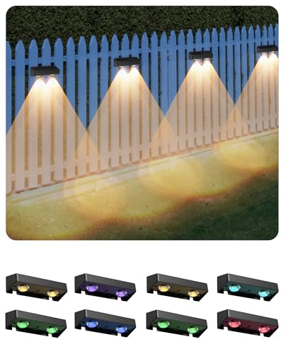 BUCASA Solar Fence Lights, 4 Pack Solar Lights Outdoor Garden Fence with White Light and Multi-Color Light, 8 Modes Outdoor Light Waterproof for Garden Ornaments Outdoor, Step, Fence, Yard