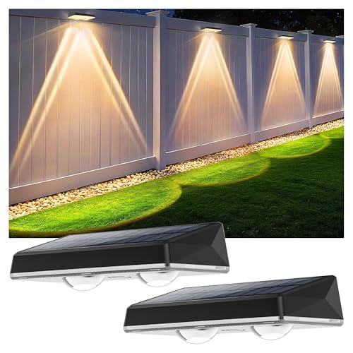 LeiDrail Solar Fence Lights Solar Lights Outdoor Garden LED Solar Powered Outdoor Wall Lights Waterproof Decor for Patio Yard Warm White 2 Pack