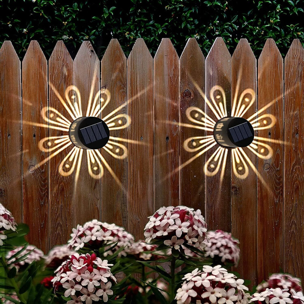 IJSDNVJNDX Solar Powered Metal Fence Lights 2 Pack Solar Outdoor Wall Deck Step Lights for Garden Post Patio Backyard Yard Decor Mandala