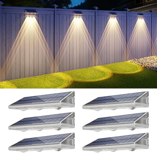 YiLaie Solar Fence Lights Outdoor-IP67 Waterproof 3000K/4500K/6500K,High Brightness LED Fence Lights Solar Powered,Solar Wall Light for Outside Backyard/Railing/Step/Patio/Stair Railings/Pool (6 Pack)