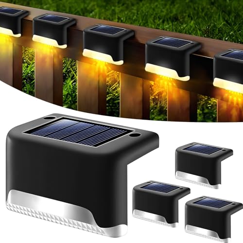 OUZHOU Solar Fence Lights, 4 Pack Solar Deck Lights Outdoor IP65 Waterproof, Outdoor Garden Light for Deck Stair Fence Railing Pathway Wall Garden Backyard (Warm)