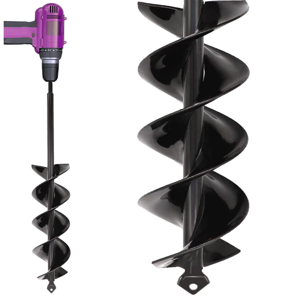 Garden Auger Drill Bit Heavy Duty Steel Spiral Hole Digger Tool For Planting Bulbs And Fence Post Holes Glossy Black Painted Finish Quick Digging Gard