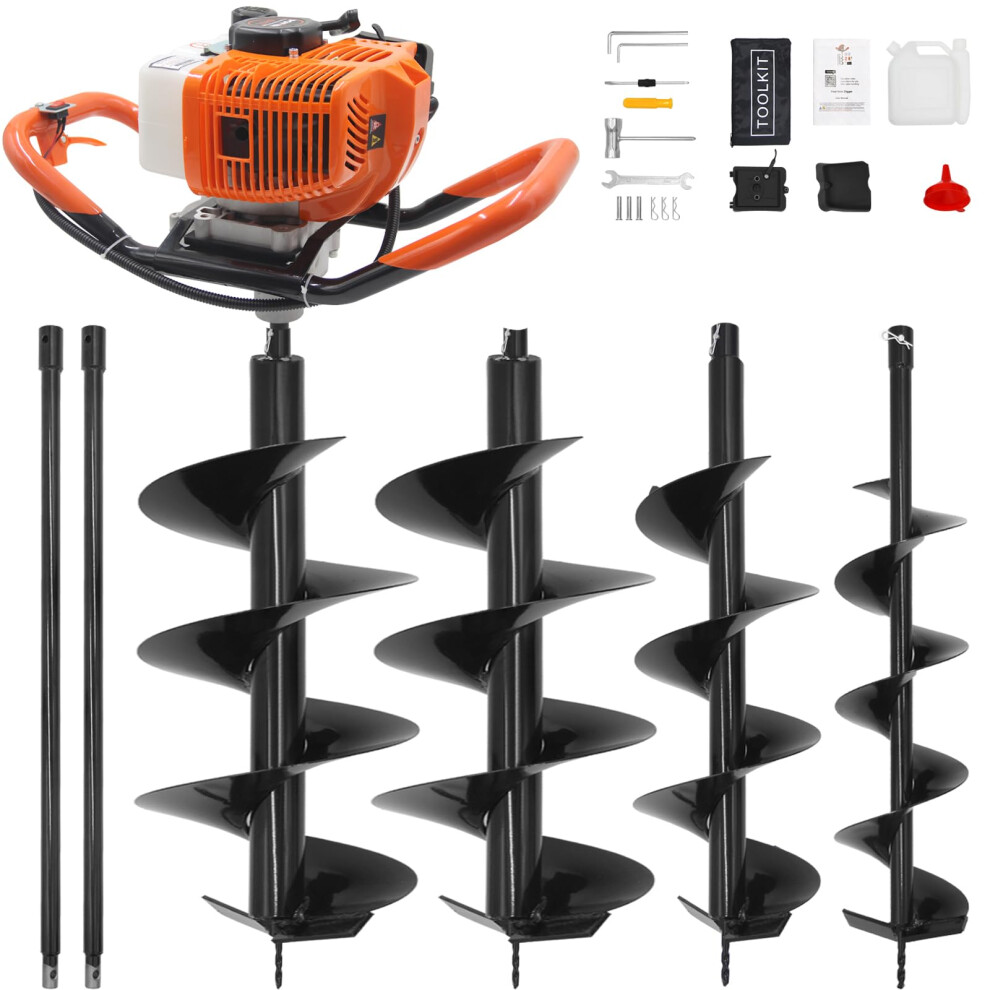 52CC Gas Powered Earth Auger Post Hole Digger with 3 Drill Bits (4' 6' 8') for Fence and Tree Planting