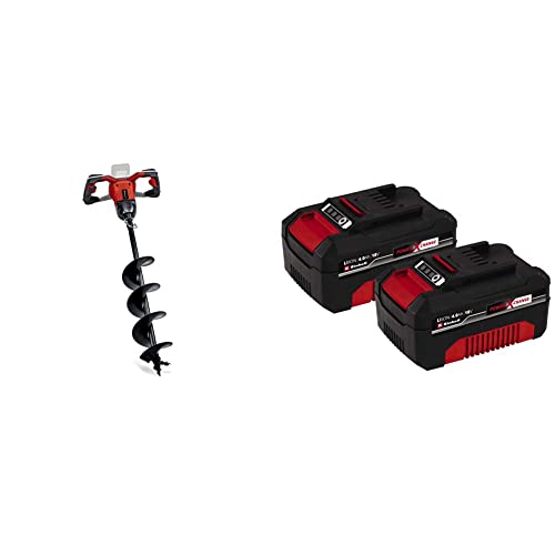Einhell Power X-Change 18V Cordless Fence Post Auger & Power X-Change 18V, 4.0Ah Lithium-Ion Battery Twin Pack