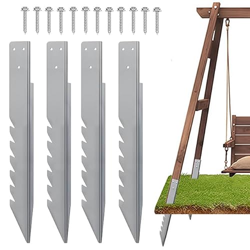 Forever Speed 4pcs Fence Post Anchor Ground Spike Wooden Post Anchor Ground Spike,Windproof&Rainproof,Swing Ground Anchor for Kids Swing,Wooden Post,Fence,Play Tower