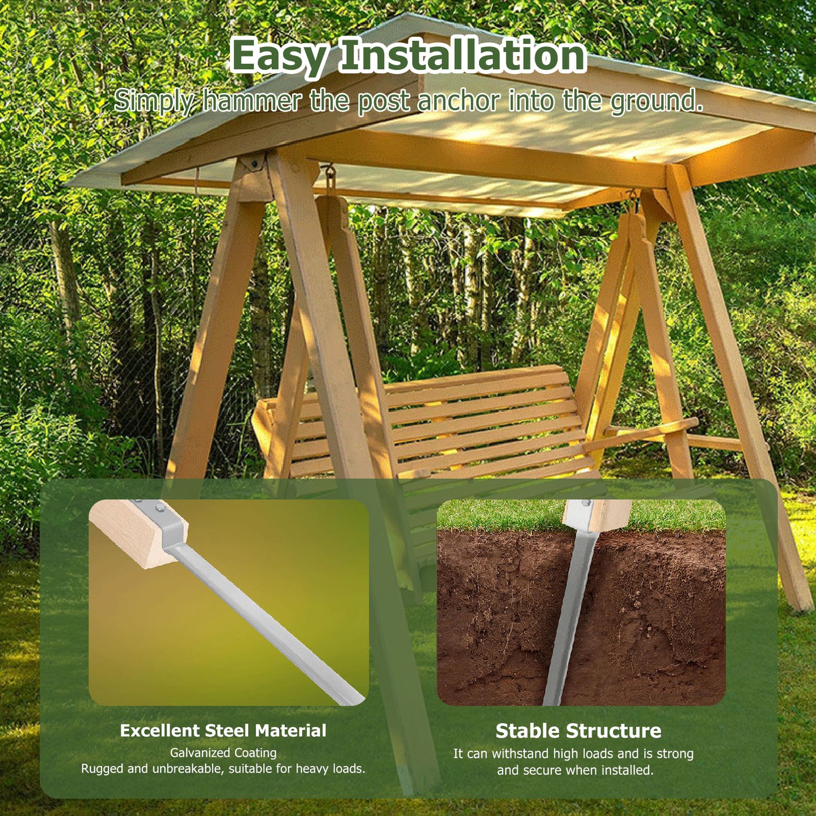 2pcs Fence Post Anchor Ground Spike Wooden Post Anchor Ground Spike Swing Fixings,Galvanized,Windproof, Rainproof,Swing Ground Anchor for Kids Swing Wooden Playhouse