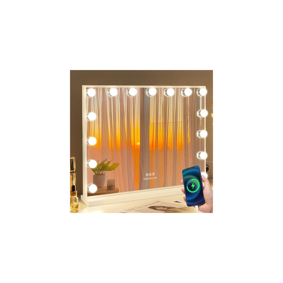 FENCHILIN Hollywood Vanity Cosmetic Mirror For Makeup with Lights, Type-C and U