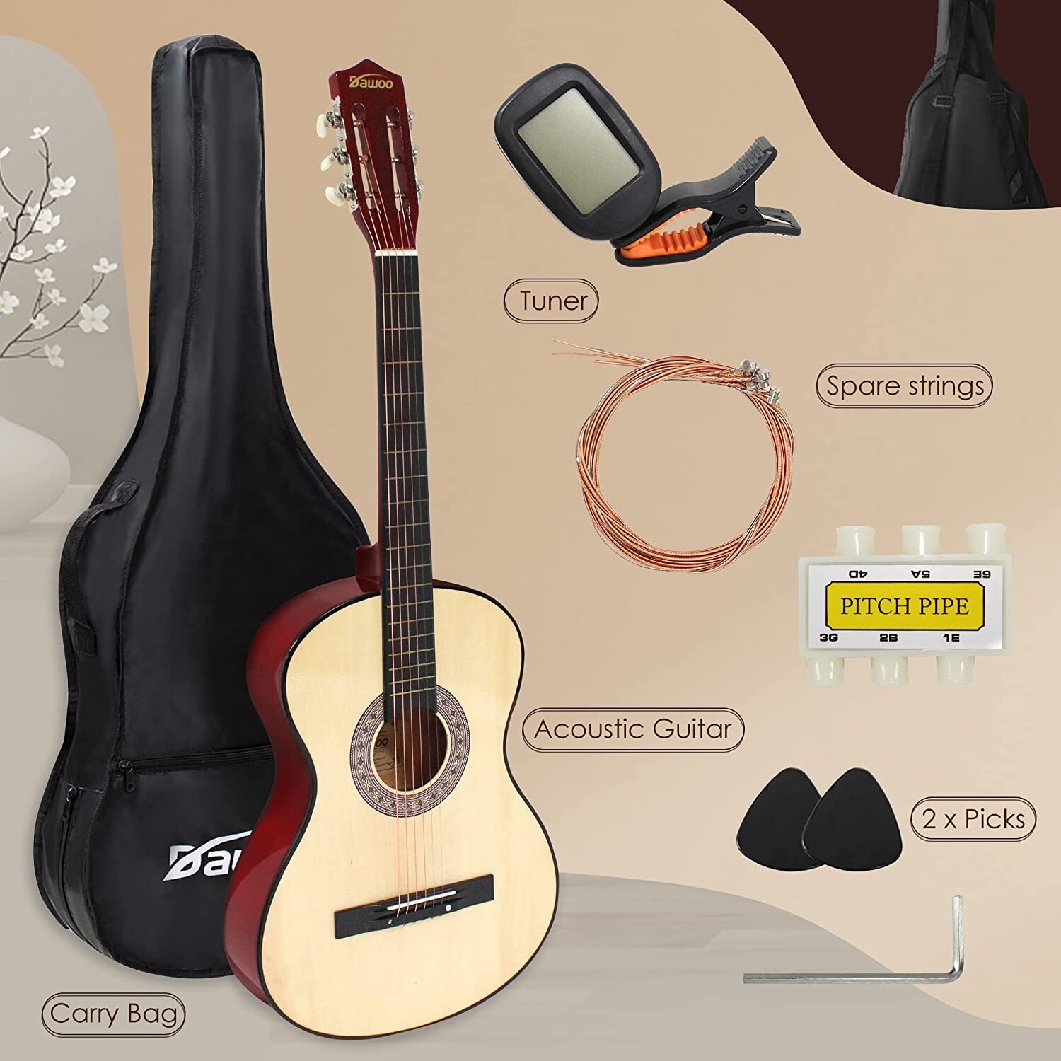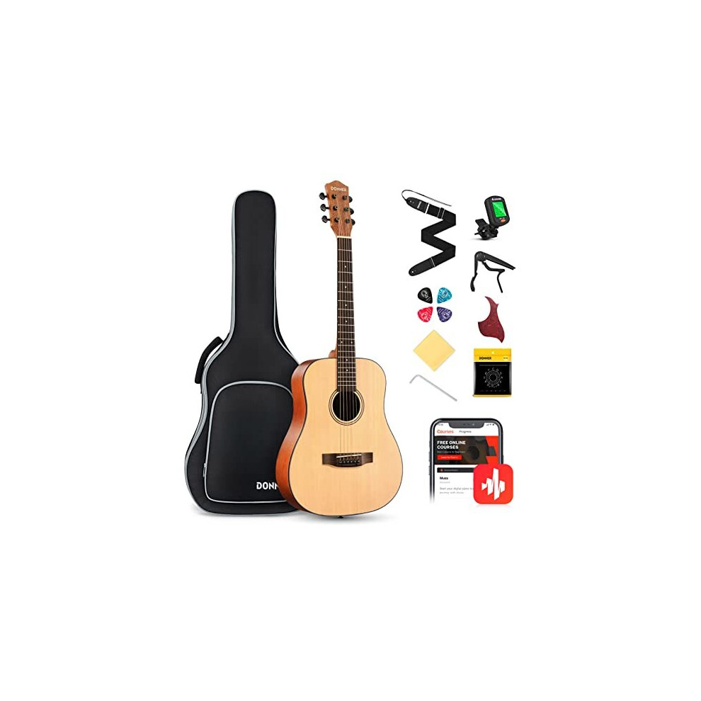 Donner Acoustic Guitar 3/4 Guitar Beginner Dreadnought 36 Inch Guitar Starter Kit With Bag Capo Tuner Strap String Guitar Picks(Natural)