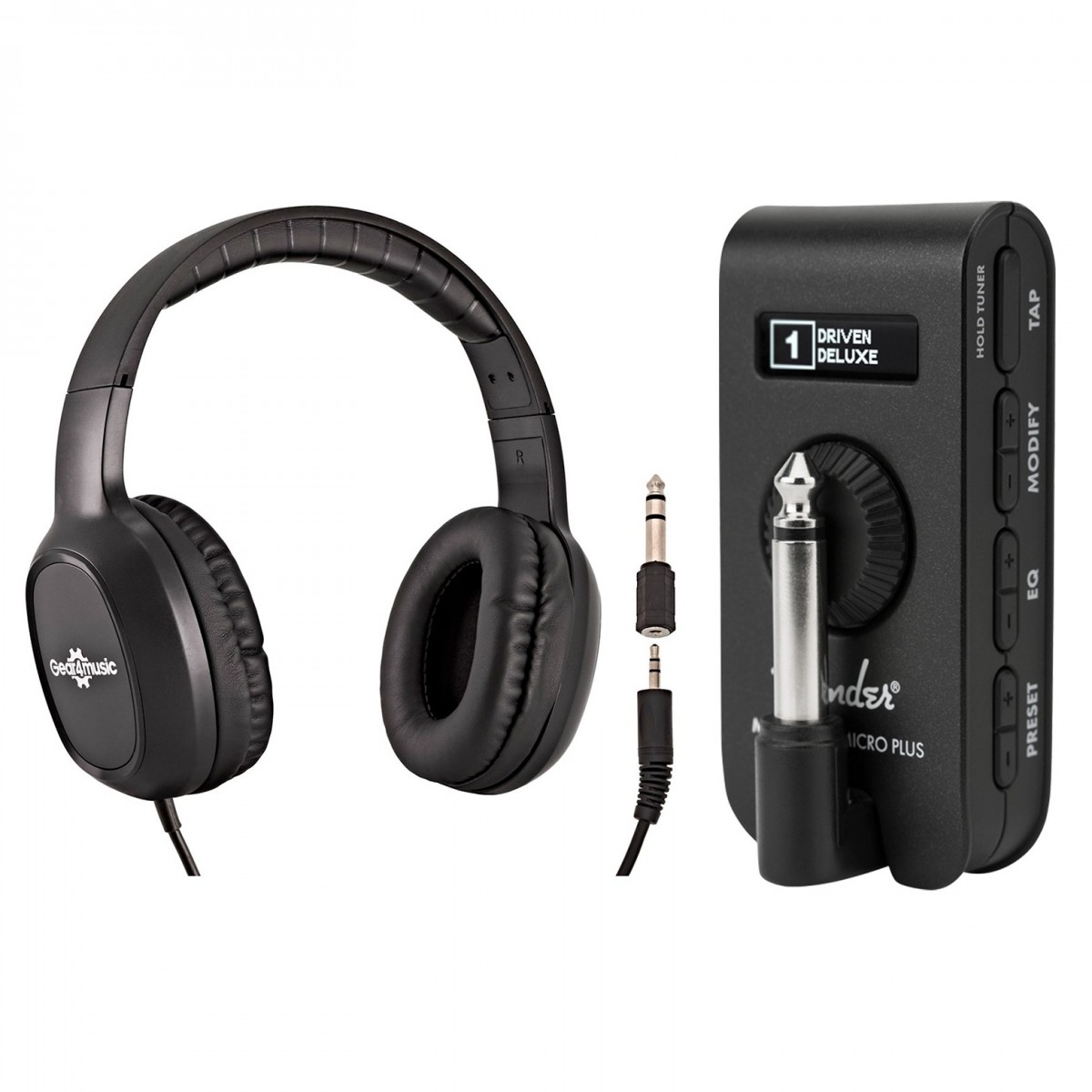 Fender Mustang Micro Plus and HP-210 Stereo Headphones by Gear4music