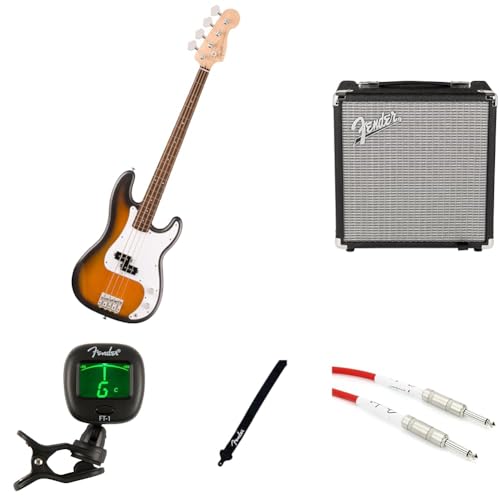 Fender Squier Debut Precision Bass Guitar Kit for Beginners, includes Amplifier, Cable, Strap, and Tuner, 2-Colour Sunburst