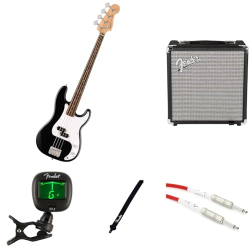 Fender Squier Debut Precision Bass Guitar Kit for Beginners, includes Amplifier, Cable, Strap, and Tuner, Black