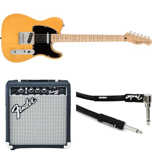 Bundle of Squier by Fender Affinity Series Telecaster, Butterscotch Blonde + Fender Frontman 10G Guitar Amp, 10W + Fender Professional Series Instrument Guitar Cable, 10 ft, Straight/Angle