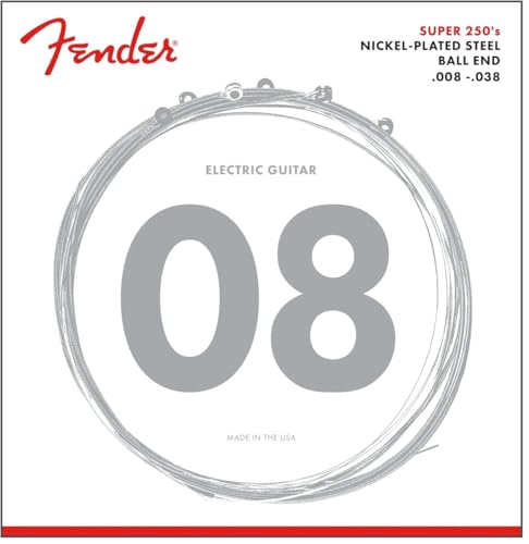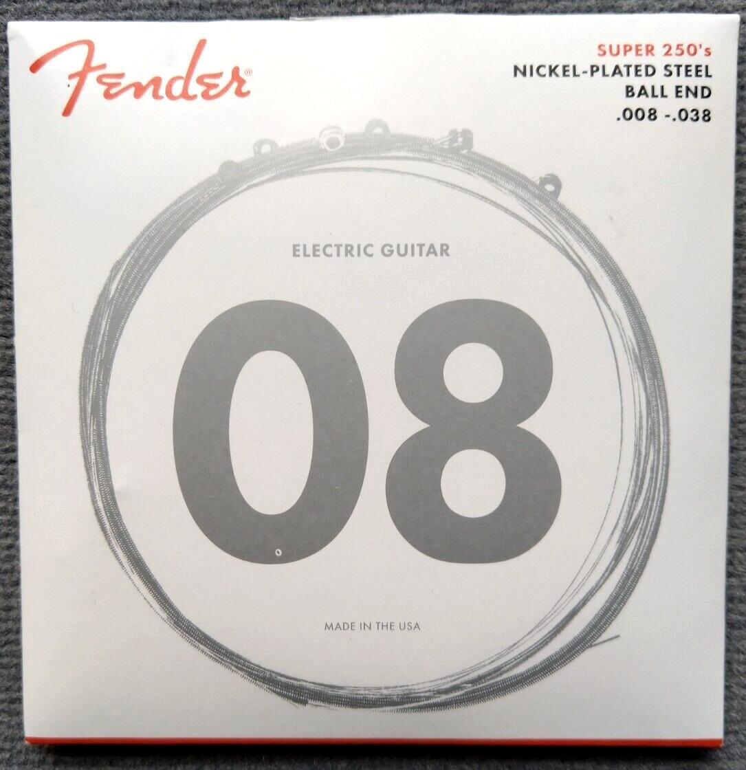 Fender Super 250 Guitar Strings, Nickel Plated Steel, Ball End, 250XS Gauges .008-.038, (6)