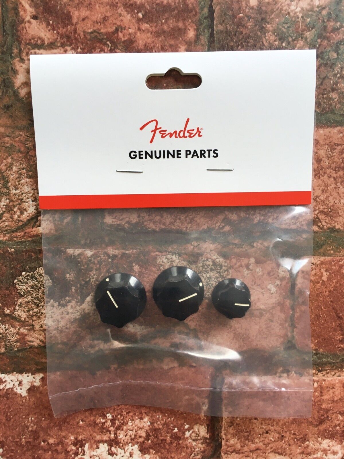 Fender American Jazz Bass Volume & Tone Knob, Set of 3, Made in the USA, Black