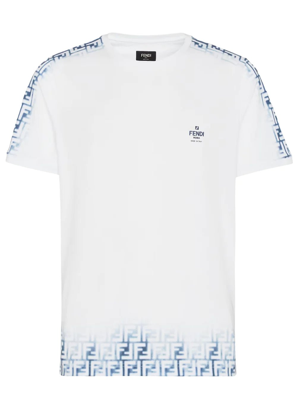 Fendi Mens FF Monogram Faded Print Avio T-Shirt in White Cotton - Size Small