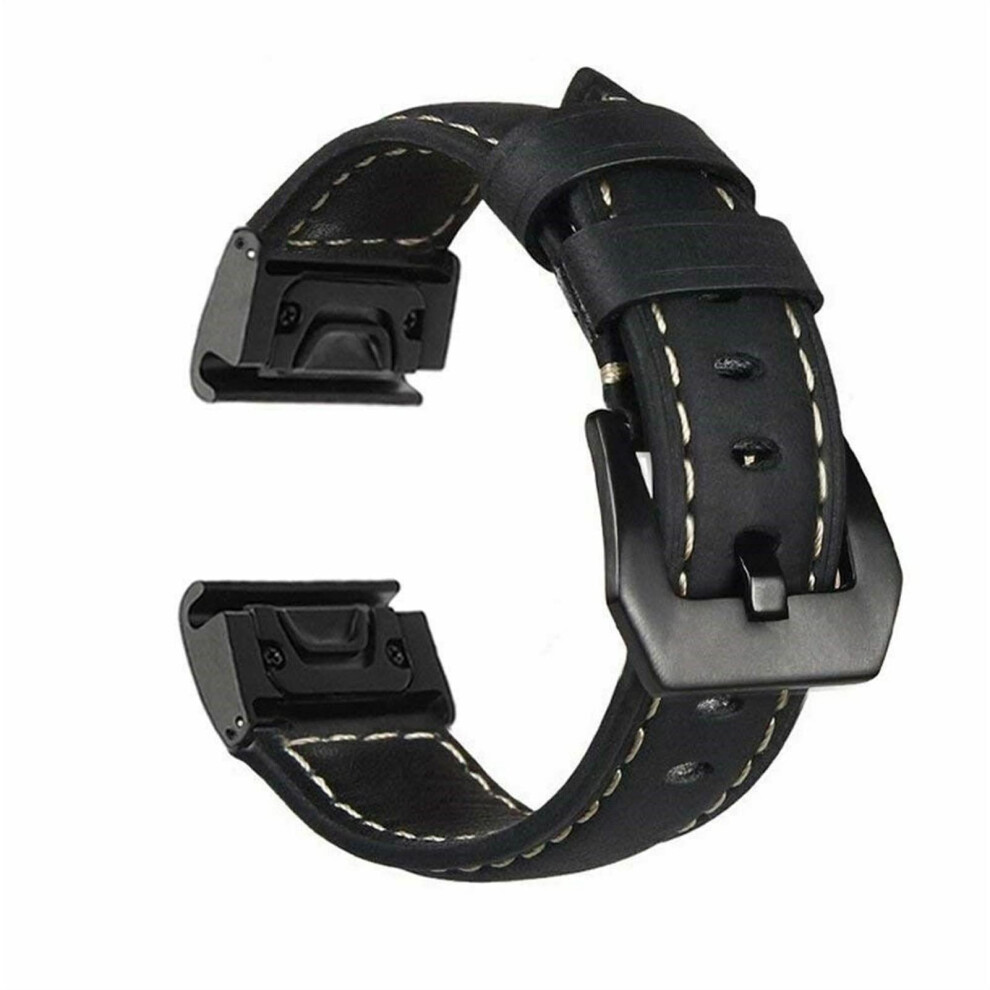 20mm Black Leather Band Quick Release Strap with Secure Clasp and Comfort Fit for Garmin Fenix 5S Plus