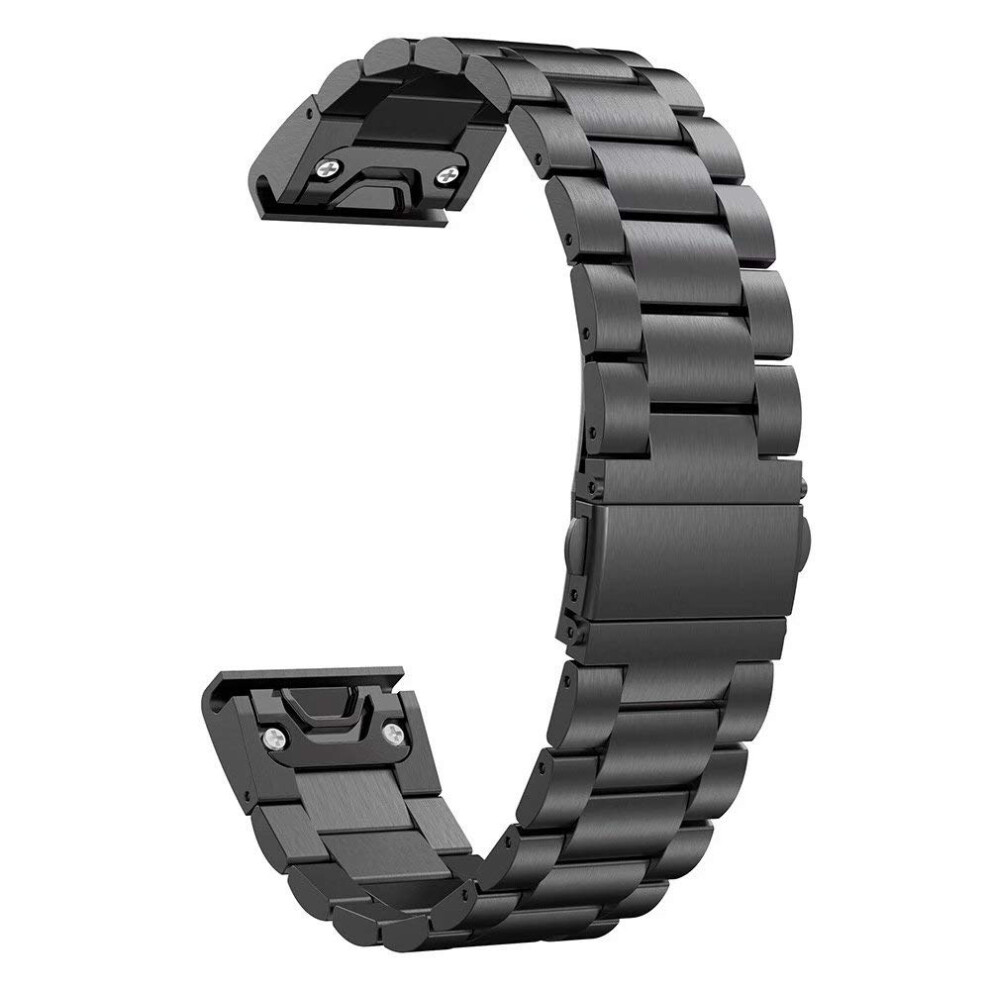 20mm Black Stainless Steel Band Large Wrist Secure Fit for Fenix 6S Pro and Garmin Fenix 5S Plus