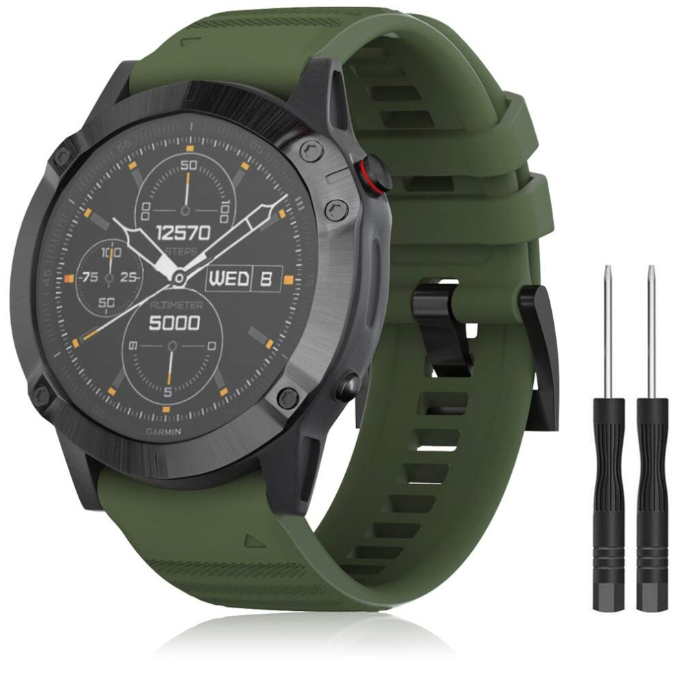 (Army Green, 26mm Garmin Fenix 6X Sapphire) For Garmin Fenix 3 HR 6 6X Pro 5 5X Plus 7 7X Quickfit Watch Band Silicone Strap Hot