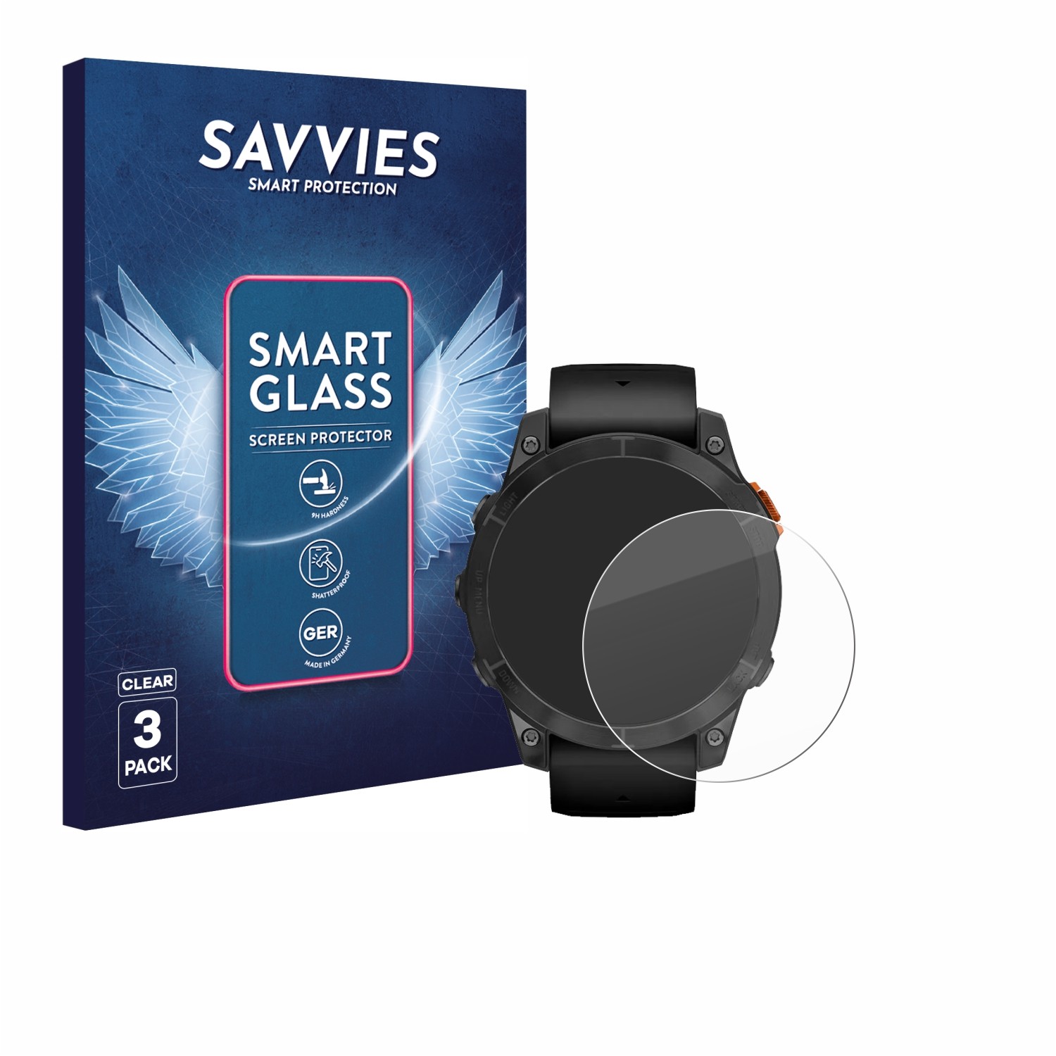 Savvies 3 Pack Tempered Glass Film compatible with Garmin Fenix 7 Pro Solar (47 mm) 9H Screen Protector, Glass-Foil, HD-Clear, Bubble-Free, Anti-Fingerprint, Anti-Scratch, Armor Protection Film