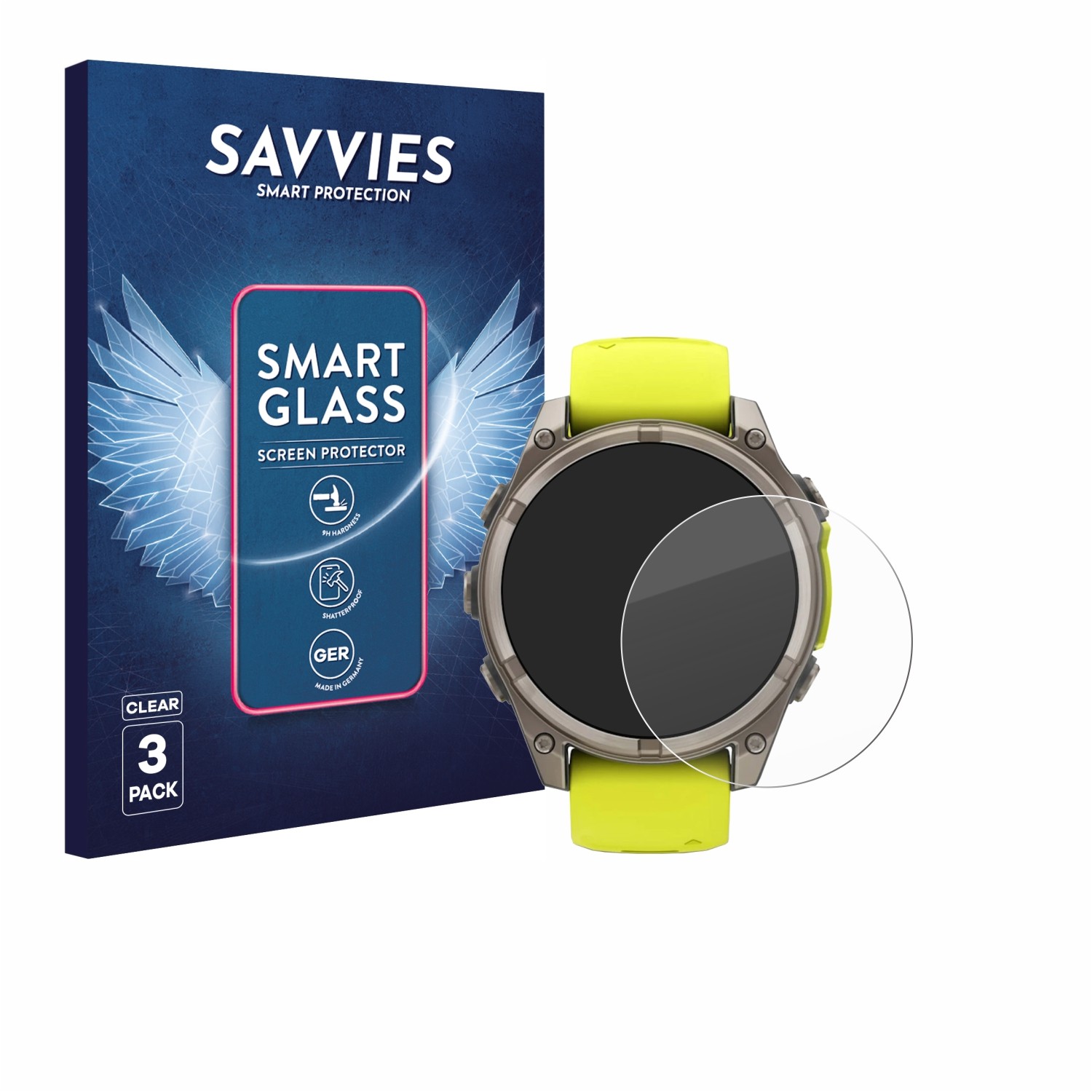 Savvies 3 Pack Tempered Glass Film compatible with Garmin Fenix 8 Solar (47 mm) 9H Screen Protector, Glass-Foil, HD-Clear, Armor Protection Film