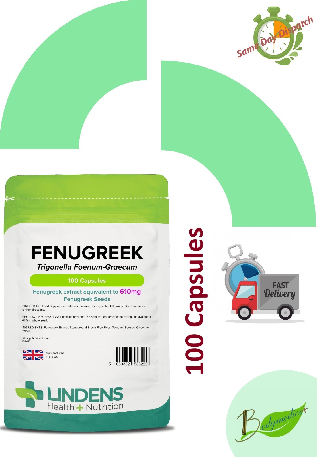 **Lindens FENUGREEK 610mg Capsules (100) Health Supplement POWERFULL