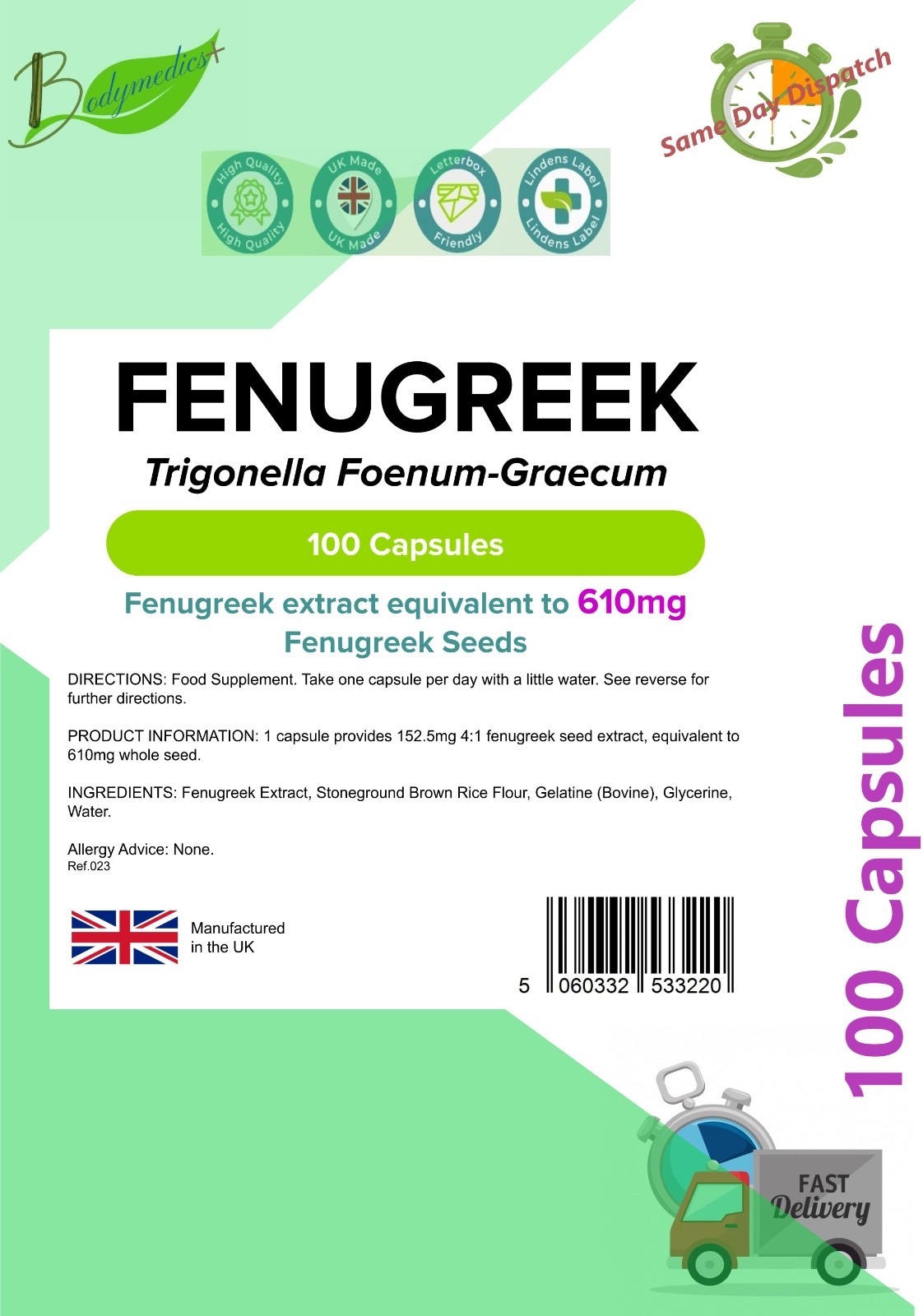 Fenugreek 610mg Food Supplement & Natural Herb for Health 100 Capsule LINDENS UK