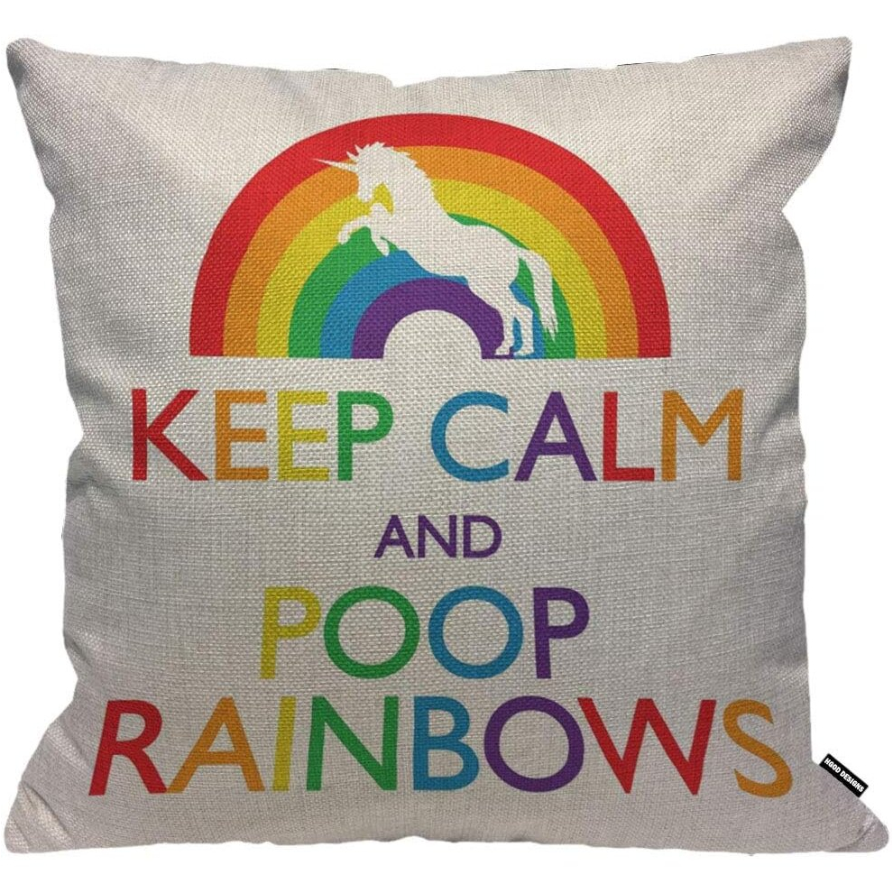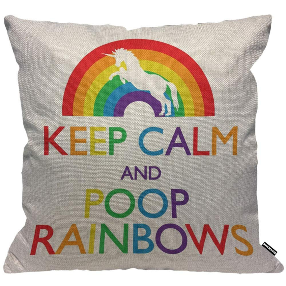 Keep Calm and Poop Rainbows Unicorn Cushion Cover Home Decor for Men Women Living Room Bedroom Sofa Chair 18x18 Inch