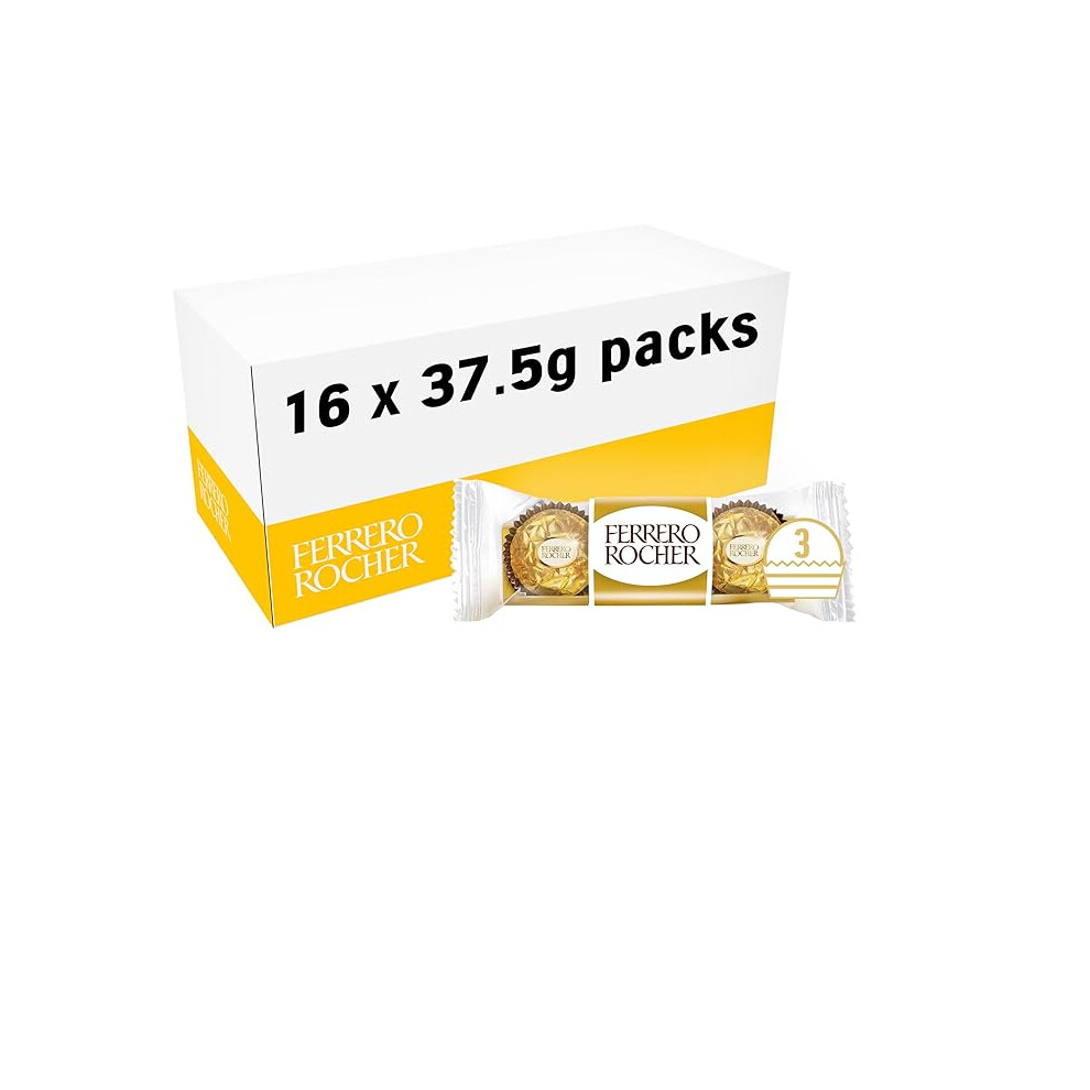 FERRERO ROCHER Chocolate PRALINES Treat Pack 3 Pieces 16 x 37.5g Full Box
