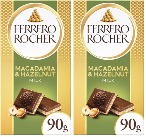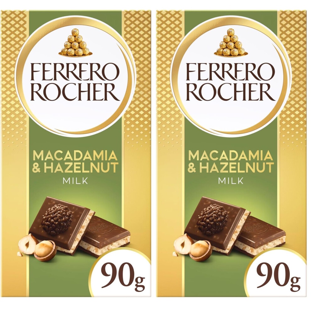 Ferrero Rocher Luxury Milk Chocolate Bar, Hazelnut & Macadamia Pieces, 90g (Pack of 2)