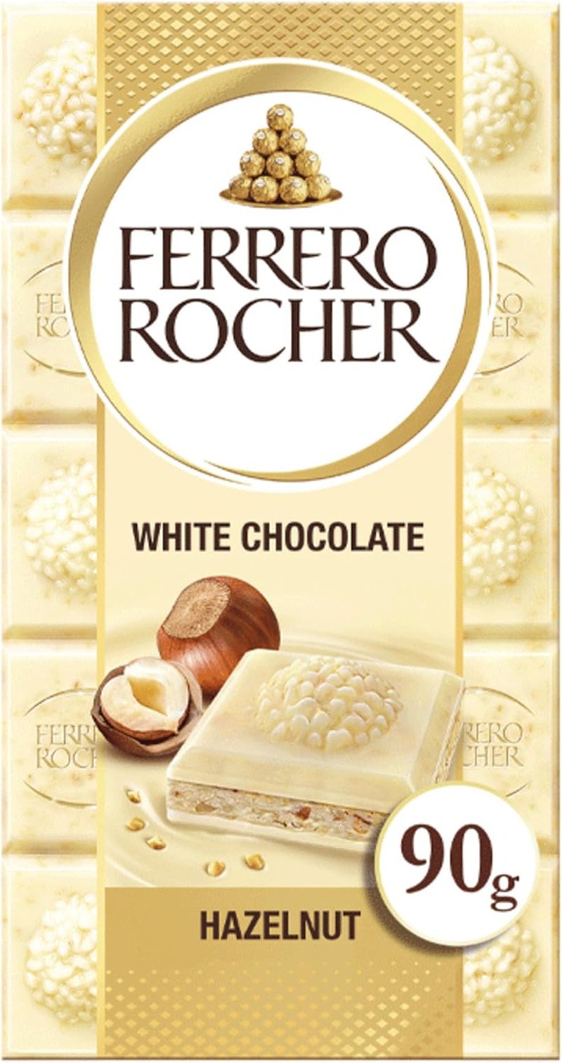 Ferrero Rocher White Chocolate Bar, Movie Night Snacks, Chocolate Gift with Crunchy Whole Hazelnut and Cocoa Filling, 90g