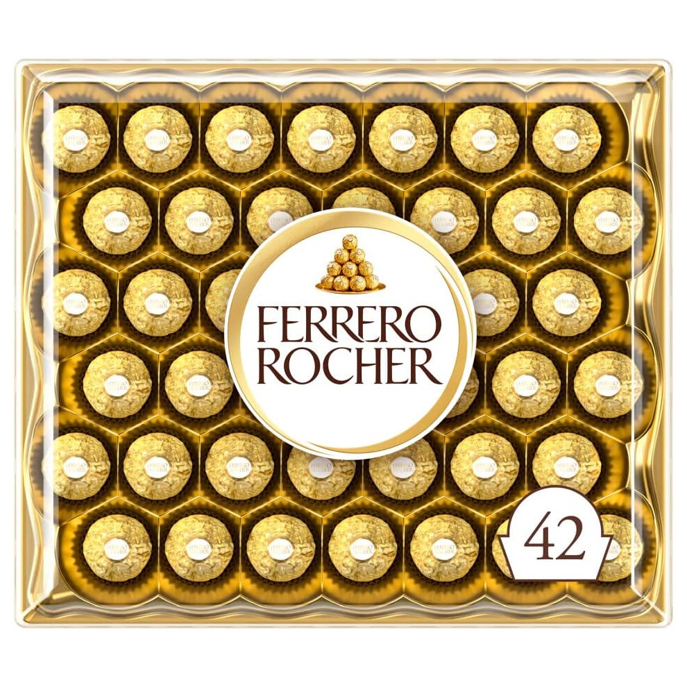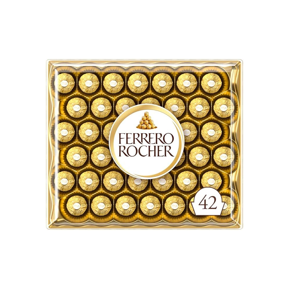 Ferrero Rocher Pralines, Chocolate Gifts, Gift for Christmas, Large Chocolate Box Covered in Milk Chocolate and Nuts, Box of 42 (525g)