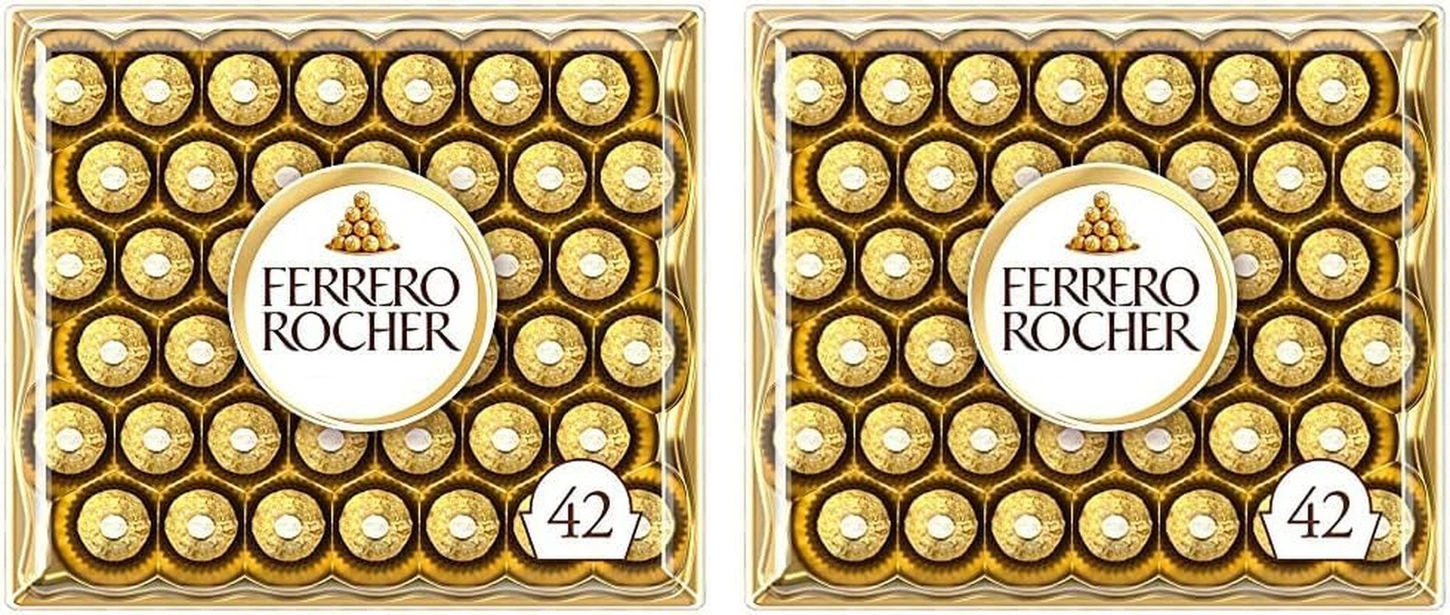 Ferrero Rocher Pralines, Chocolate Gift, Christmas Chocolate, Large Chocolate Box Covered in Milk Chocolate and Nuts, Box of 42 (525g) (Pack of 2)