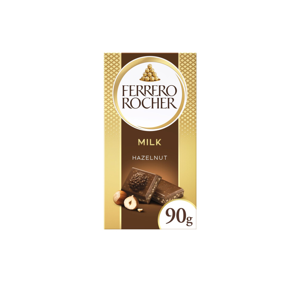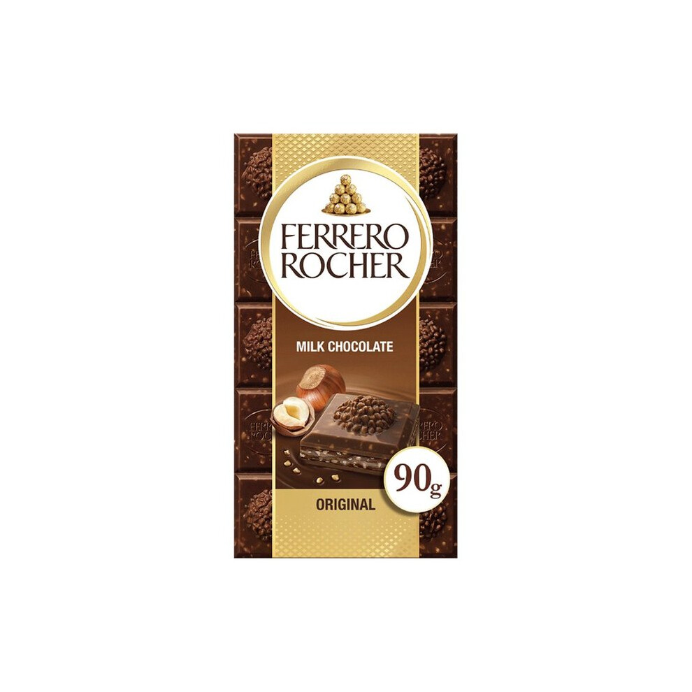 Ferrero Rocher Original Milk Chocolate Bars and Hazelnut, Party Food, Chocolate Hamper, Milk Chocolate with Crunchy Whole Hazelnut and Cocoa Filling, (90g)