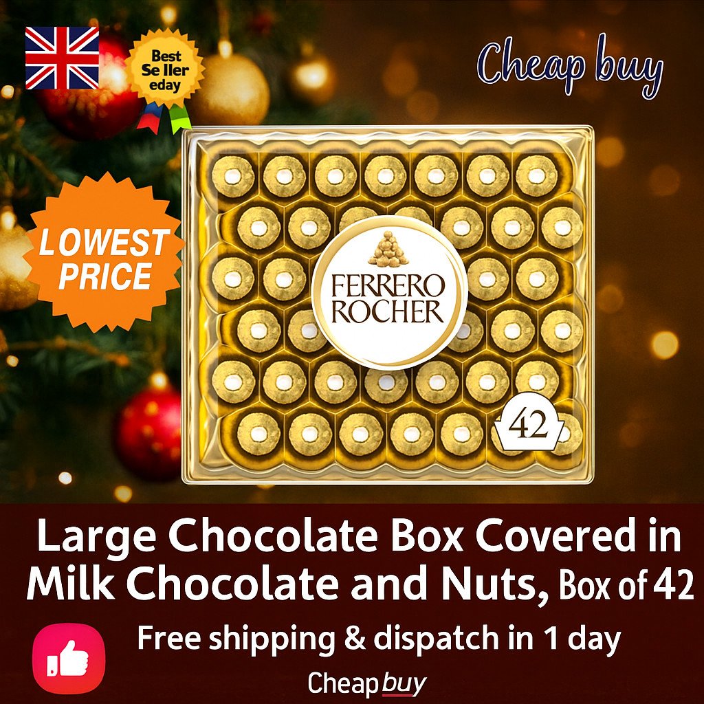 Ferrero Rocher Pralines, Chocolate Gifts, Christmas, Large Chocolate Box 42 (525