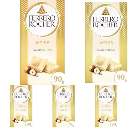 Ferrero Rocher White Chocolate Bar, Movie Night Snacks, Chocolate Gift with Crunchy Whole Hazelnut and Cocoa Filling, 90g (Pack of 5)
