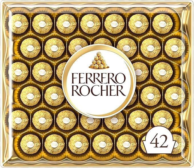Ferrero Rocher Pralines, Chocolate Gifts - Chocolate Gift Box, Covered in Milk Chocolate and Nuts, 42 Pieces (525g)