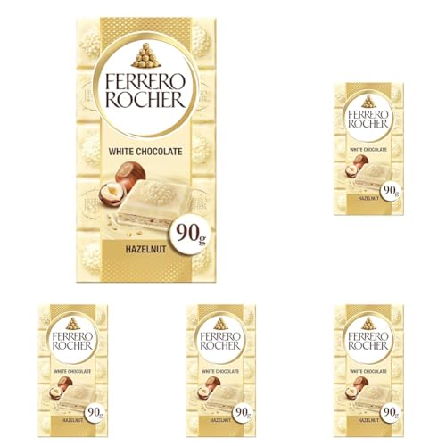 Ferrero Rocher White Chocolate Bar, Movie Night Snacks, Chocolate Gift with Crunchy Whole Hazelnut and Cocoa Filling, 90g (Pack of 5)