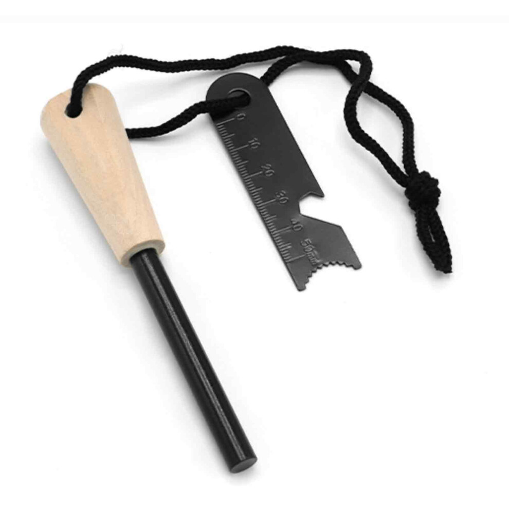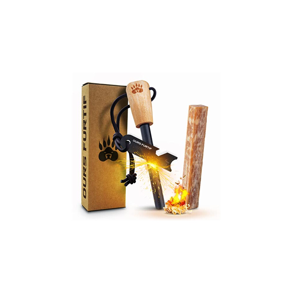 Fire Starter Survival Tool, Ferro Rod with Ceramic Striker and Magnesium Alloy Core, Multi-Tool Survival Kit with High-Grip Wooden Handle and Paracord