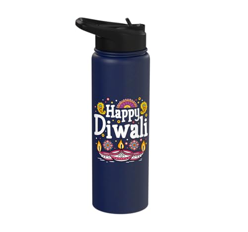 Festival of Light Rangoli Lamp Mandala Happy Diwali Stainless Steel Insulated Water Bottle