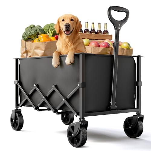 MEMEM Folding Camping Trolley Trolley Camping,4 Wheel Festival Trolley,Folding Cart Wagon,Shopping Trolley,Garden Trolley,Pull for Shopping Camping,Perfect for Beach, Camping, and Garden(Black,5 in)