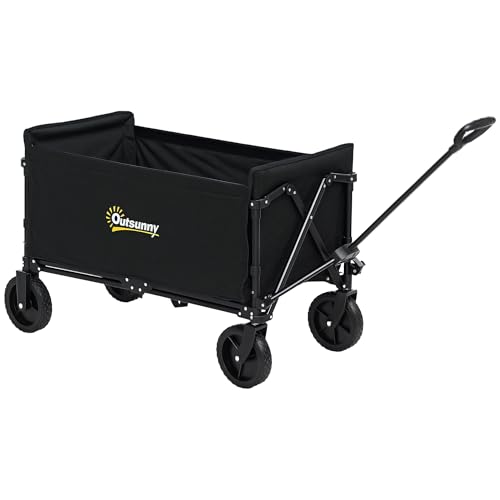 Outsunny 120L Festival Trolley on Wheels, Folding & Compact Camping Trolley Cart with Adjustable Handle for Garden, Beach, Fishing, Black