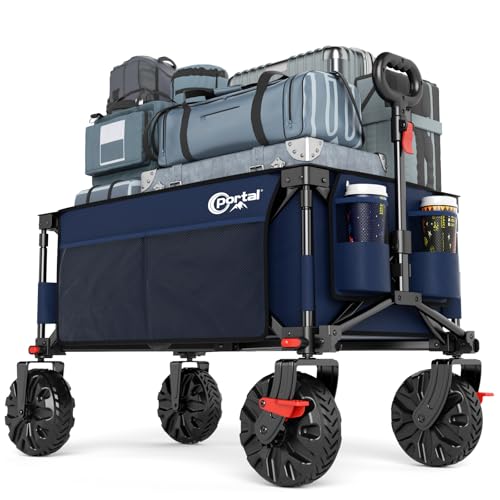PORTAL Beach Trolley on Wheels for Sand with Brakes All Terrain Big Wheels Festival Camping Trolley Folding Beach Wagon Garden Trolley Supports 110kg Heavy Duty Collapsible