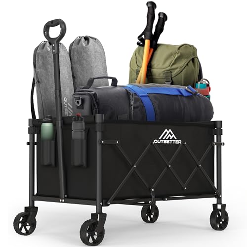MoverX 70L Festival Trolley on Wheels, Folding Wagon, Portable Camping Cart, Collapsible Foldable Trolly for Beach Outdoor Garden Picnic Shopping Fishing, Wide Wheels, Adjustable Handle, Black