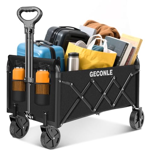 DGHKB Trolley Camping,4 Wheel Festival Trolley,Folding Cart Wagon,Shopping Trolley,Garden Trolley,Pull for Shopping Camping,Perfect for Beach, Camping, and Garden Black,8 in